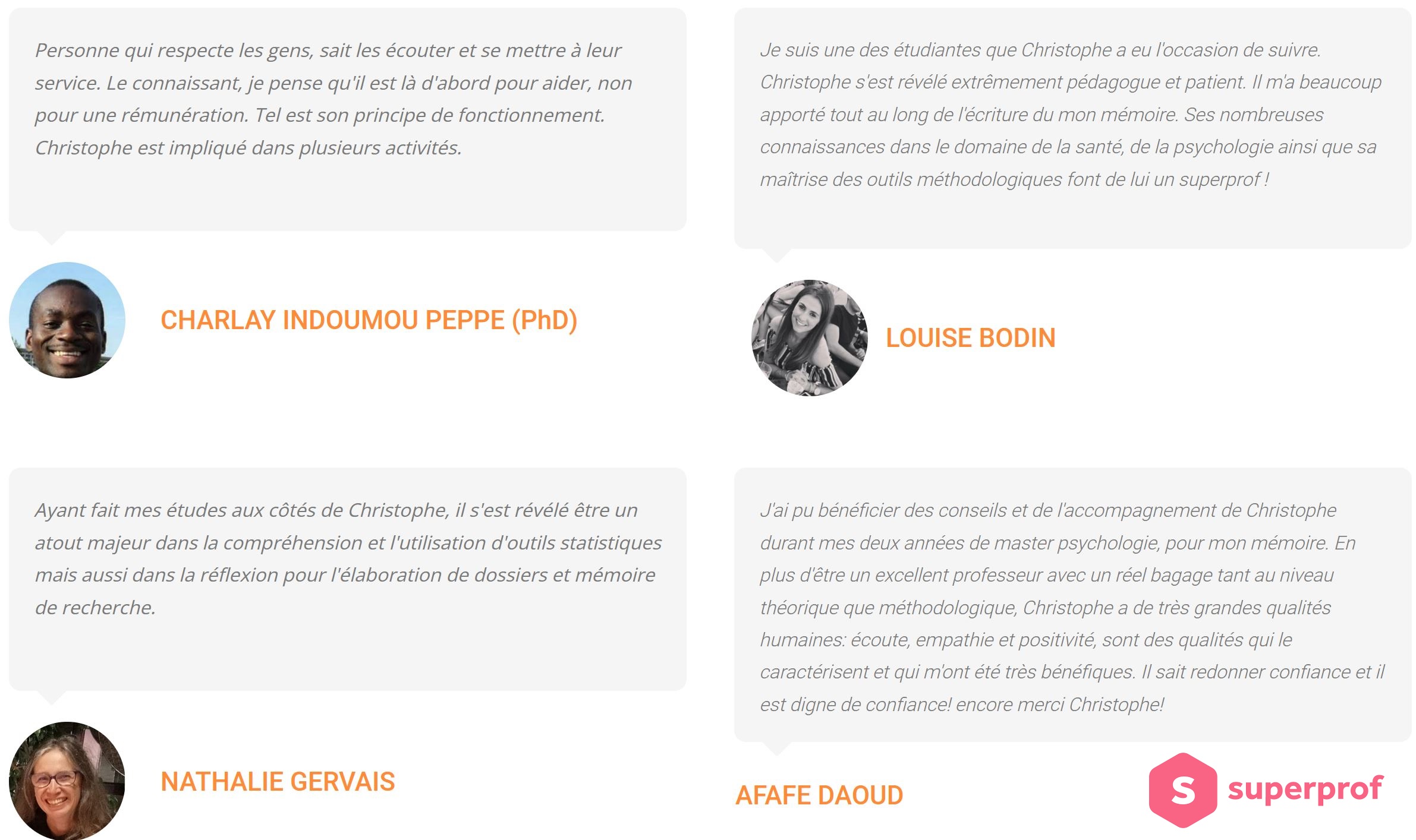 Cependant, grâce au grand sens pédagogique et à la bienveillance de Christophe Cousi à travers ces séances de formation et les documents de méthodologie qu'il propose m'ont guidé et permis de vaincre cette peur de la page blanche que la plupart des personnes craignent dans la rédaction d'un mémoire ou d'une thèse. Le contenu de cette offre qu'il propose est d'une approche innovante, adaptative et accessible à la compréhension de la recherche scientifique qui paraît difficile.